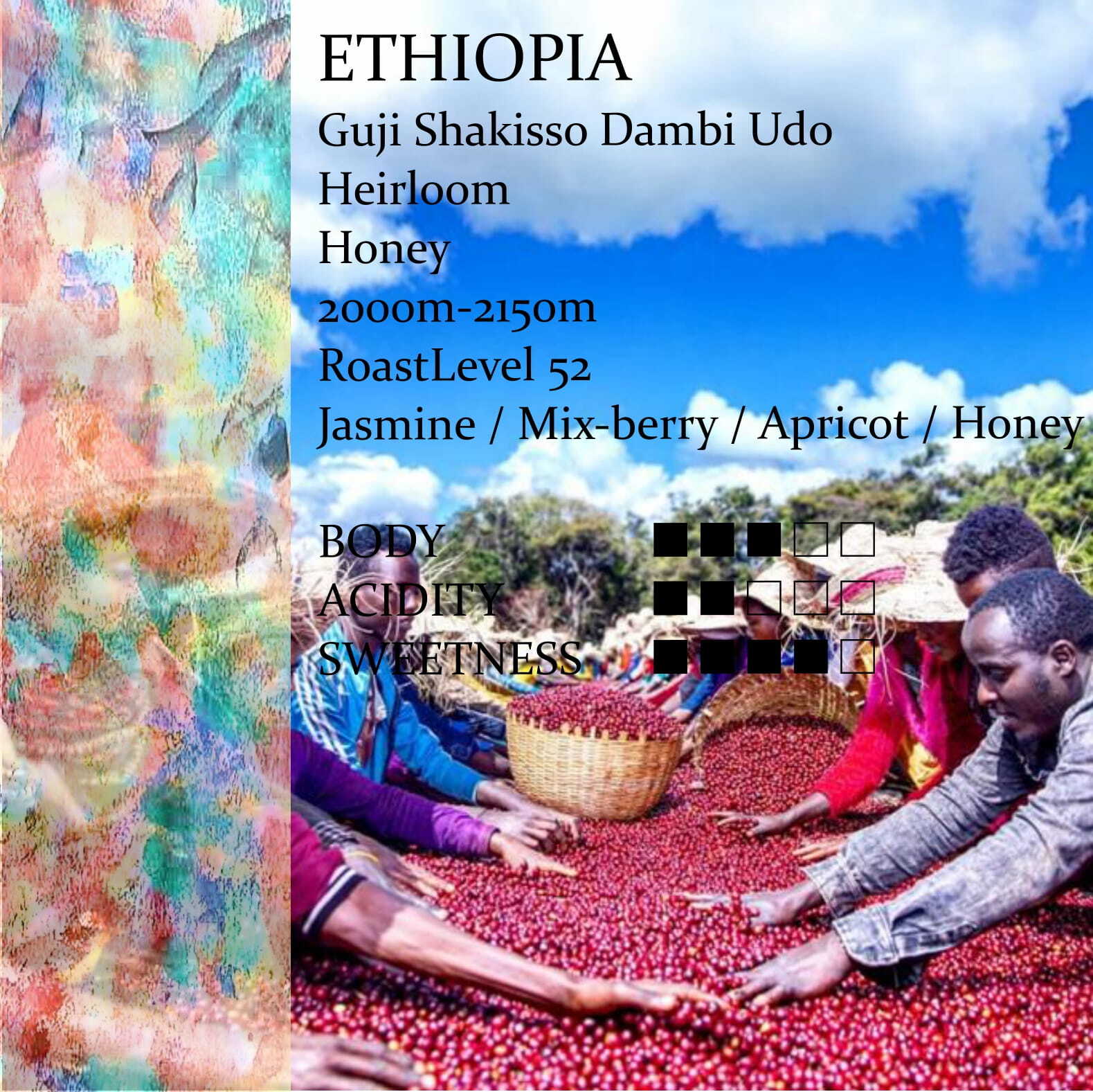 グジはエチオピア南部に位置する広大な森林地域で、ゲデオとシダマのゾーンに接し、ウラガ、ケルチャ、シャキッソという三つの地区に分かれています。それぞれの地区は特有のプロファイルを持つコーヒーを生産しています。ダンビ・ウド農場はシャキッソ地区の中心に位置し、この地域特有の森林に一般的に見られる大きな木の名前に由来しています。ここでは森林が豊富で多様な木々に恵まれ、有機物が豊富なため、土壌の質も非常に優れています